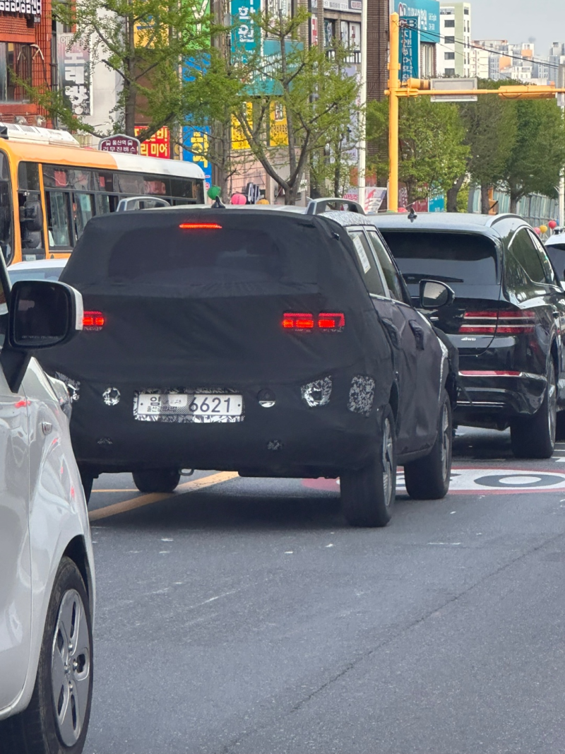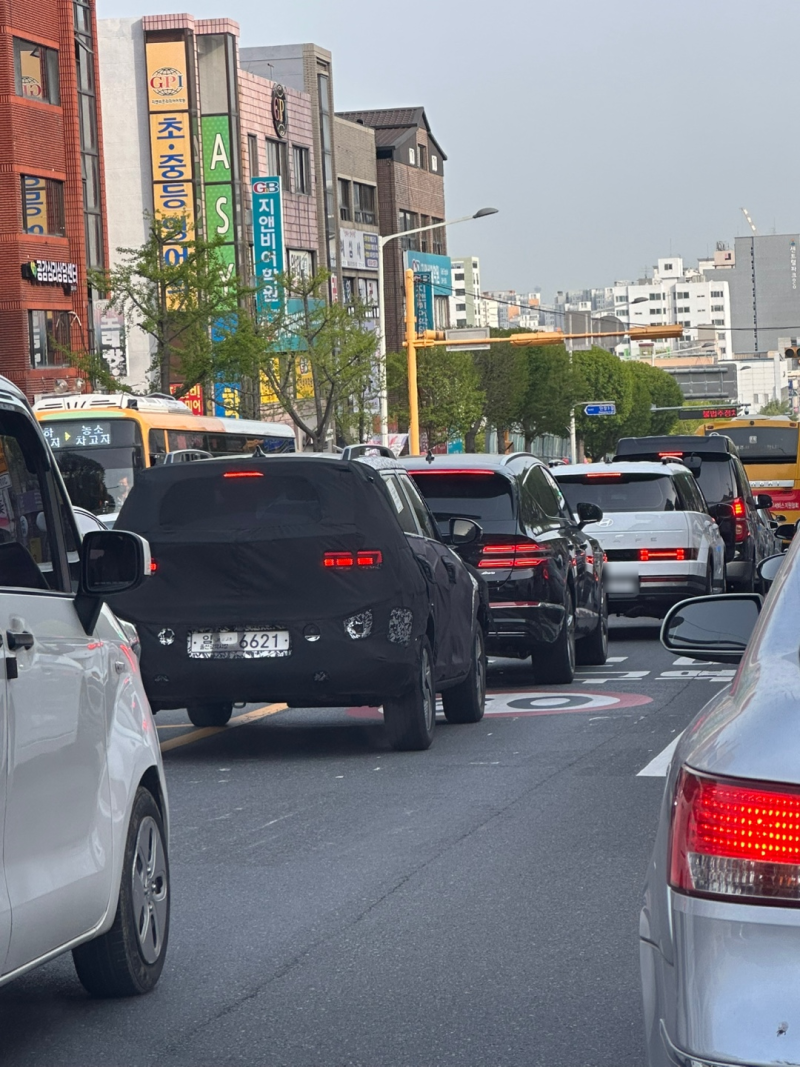 베뉴 중에서도 N 라인입니다그릴이 다르고 위장막 사이로 옆구리에 빨간 라인이 보이네요휠에도 N이 선명하고요힐러티비 펌
