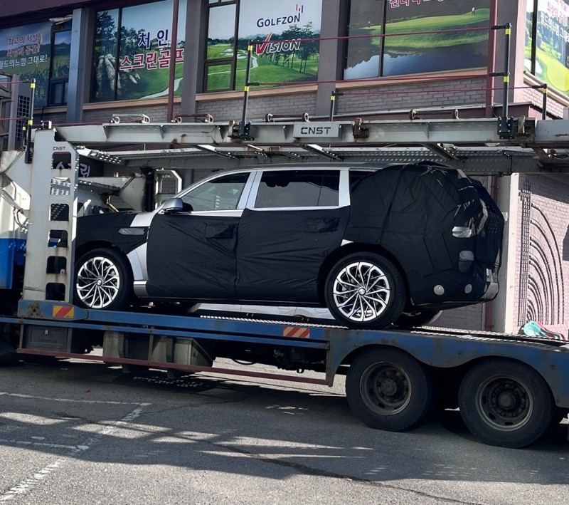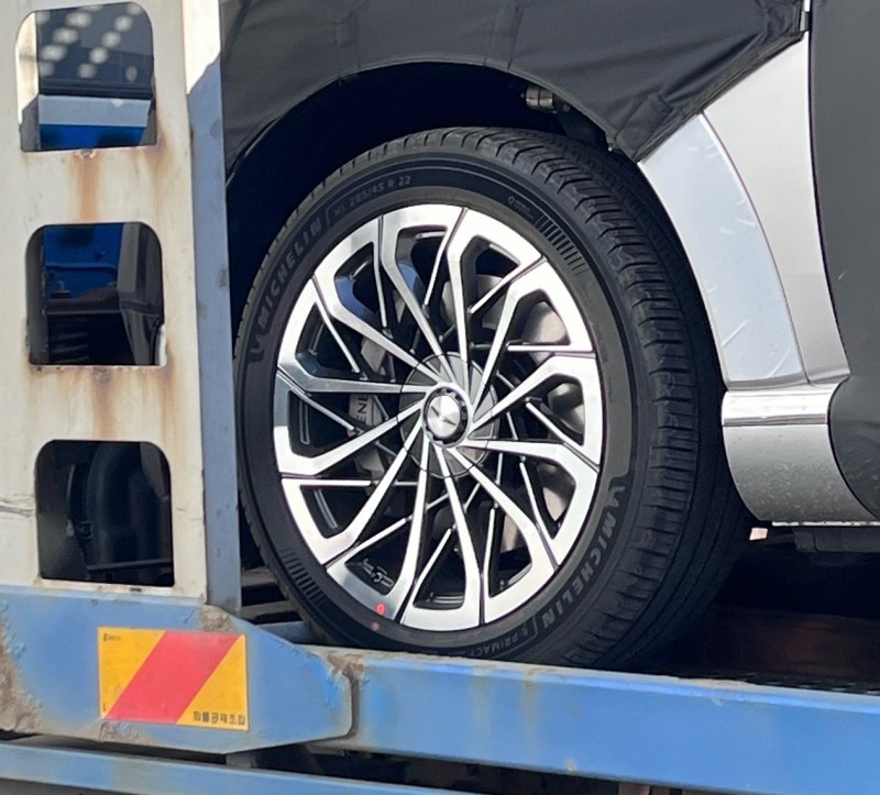근접 촬영한 제네시스 GV90 일반형 스파이샷 튜9 0 55 0 01.08 11:04 가까이서 촬영된 GV90입니다도어 캐치 위치랑 필러 부근 보니 일반형이네요미쉐린 22인치 타이어 끼우고 있네요전기차동호회 펌 0