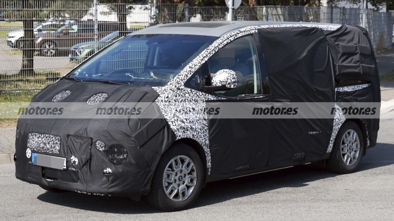독일 뤼셀하임에 있는 현대차 연구개발 센터 근처에서 스타리아 전기차 시험주행 모습이 포착됐네요. 스파이샷을 보니 위장막 덕지덕지 붙였지만 그릴이 닫힌 패널로 대체된 걸 확인할 수 있습니다. 측면 하단부에서는 배터리 박스 금속 테두리도 살짝 보이고, 17인치 알로이 휠도 장착했네요.