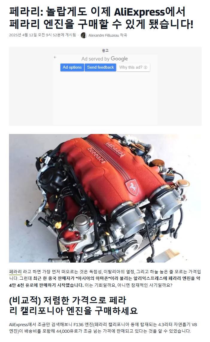이제 페라리 엔진도 온라인 쇼핑할 수 있네요