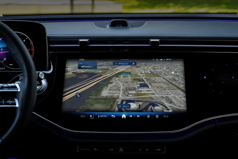MBUX 인포테인먼트 시스템 내 '대체 실시간 경로(Alternative Live Routes)' 기능은 '전기 지능형 내비게이션(Navigation with Electric Intelligence)'(메르세데스의 충전 경로 계획 시스템)과 함께 사용할 경우 목적지까지 여러 경로를 지능적으로 계산한다.