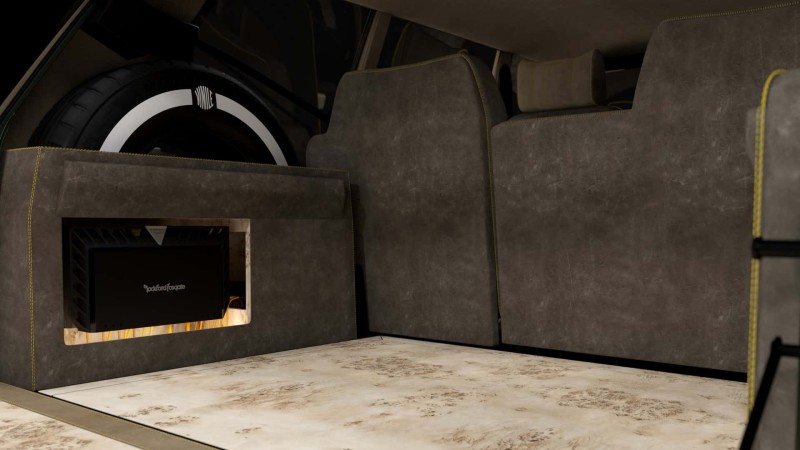 실내는 클래식 모델과 크게 달라졌다. 45제곱미터의 특별한 백스터 가죽이 대부분의 내부를 덮고 있으며, 대시보드 중앙에는 새로운 인포테인먼트 시스템을 제어하는 10.1인치 소니 터치 모니터가 설치됐다. 이는 3개의 록포드 앰프, 10개의 스피커, 2개의 포칼 서브우퍼로 구성된 오디오 시스템과 연결됐다.