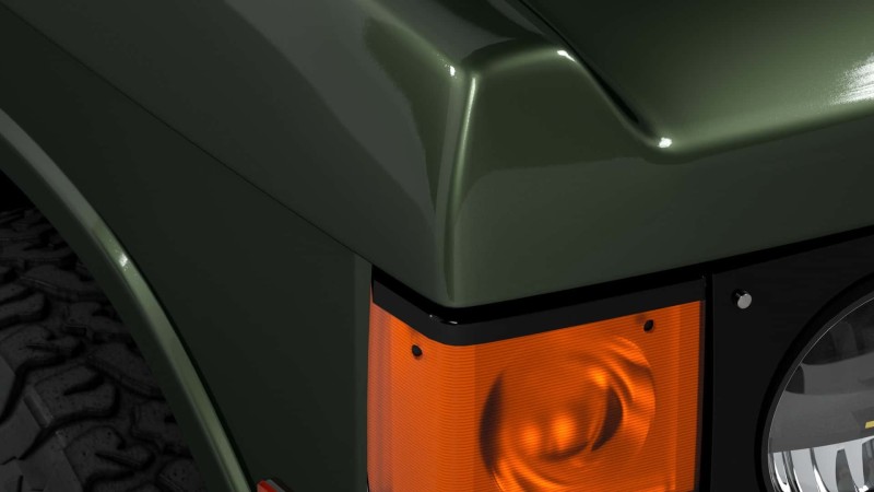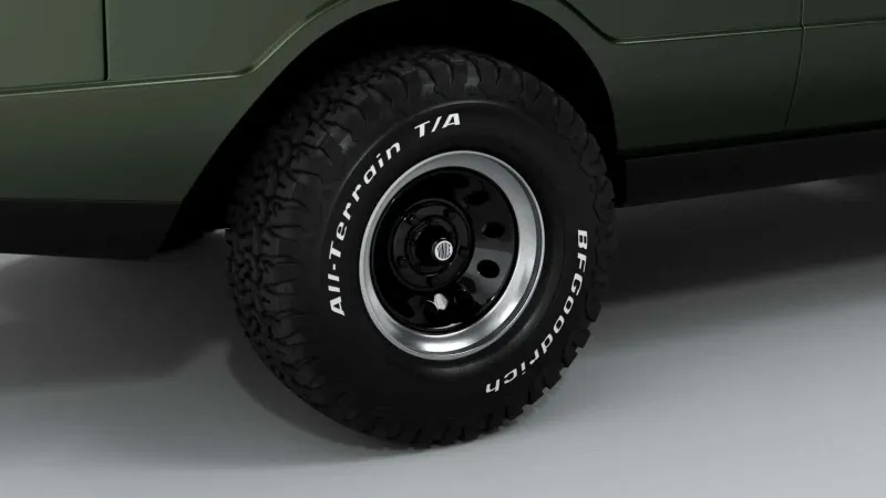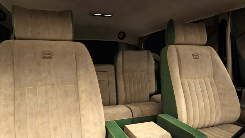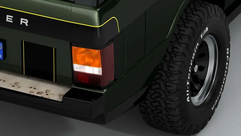 녹색 차체는 노란색 파이핑이 있는 광택 블랙 밴드로 장식돼 현대적인 레인지로버를 연상케 한다. 그 외에도 새로운 범퍼, 리어 디퓨저, LED 테일라이트, 루프 스포일러 등이 눈길을 끈다. 휠은 여전히 16인치 크기로, 더 큰 프로필(245/70 R16)의 타이어를 장착했다.