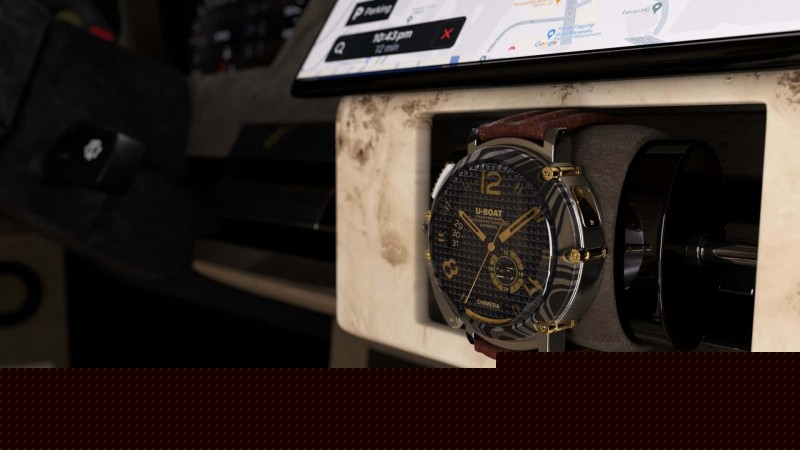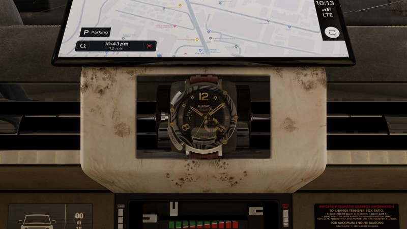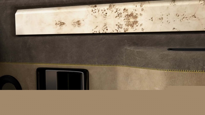 모니터 아래에는 포플러 루트 요소로 만든 직사각형 장식(대리석처럼 보이며 트렁크와 센터 콘솔에도 사용됨)이 있고, 중앙에는 시계를 보관할 수 있는 원통형 공간이 있다.