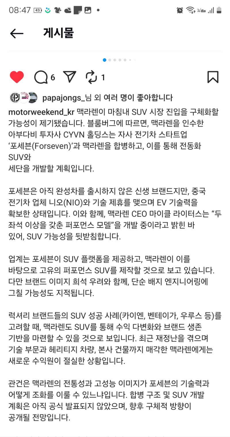 맥라렌 전기 SUV 개발!