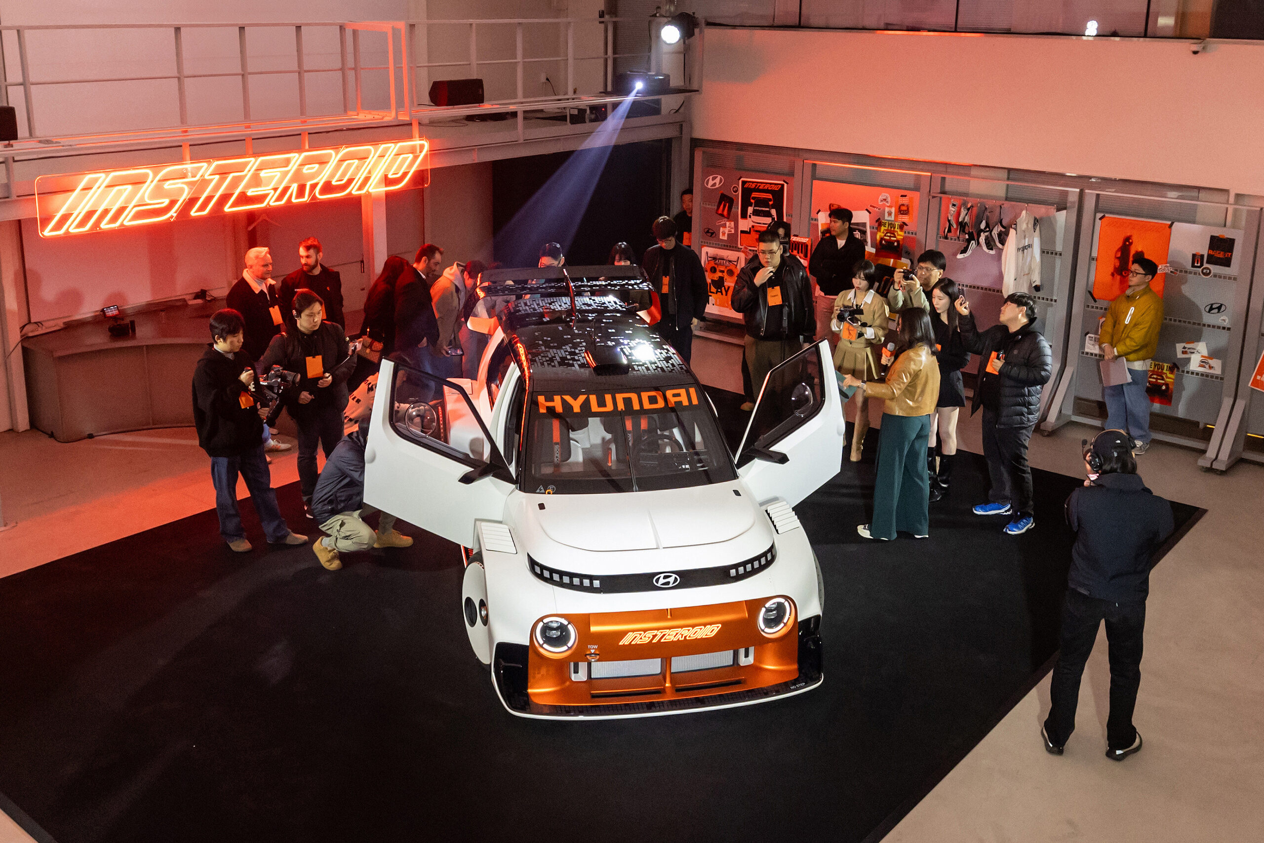 인스터로이드는 ‘만약에(What if)?’라는 질문에서 출발한 프로젝트로, 인스터의 실용성과 주행 즐거움에 비디오 게임 요소를 결합했다. 확장된 차체, 21인치 휠, 윙 스포일러, 휠 아치 공기 플랩 등을 통해 안정성과 효율성을 강화했다.