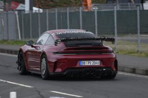 테스트 첫날, 경미한 위장막을 두른 포르쉐는 바이작 사양의 리어 윙을 장착했다. 포르쉐가 992.2 시리즈부터 911 GT3에 바이작 패키지를 도입했다는 점이 주목할 만하다. 기본 생산 모델과 비교했을 때 가장 눈에 띄는 변화는 랩타임을 단축하기 위한 필수 요소인 낮아진 서스펜션이다.