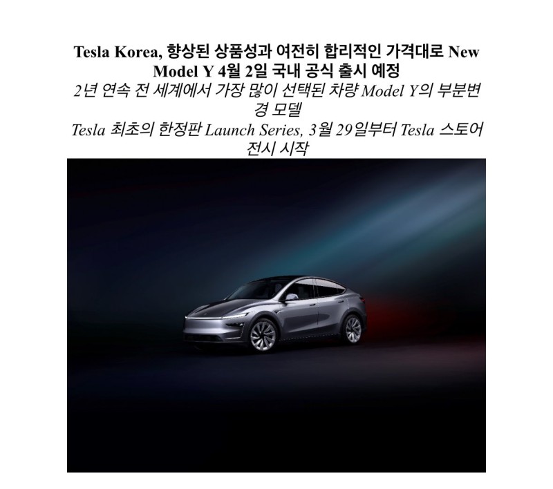 테슬라 모델 Y 주니퍼 국내 가격 떴네요 튜9 0 310 0 2025.03.28 13:47 모델Y 주니퍼 가격 RWD 5,299만원 LR 6,314만원이라고 합니다4월 2일공식 출시 0