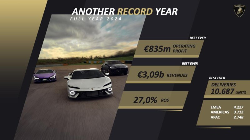 스테판 윙켈만 람보르기니 회장은 "2024년은 제품 포트폴리오를 전면 개편하면서도 글로벌 전 지역에서 고른 성장을 이룬 해였다"며 "앞으로도 성능, 독창성, 혁신을 바탕으로 럭셔리 슈퍼카 시장을 선도해 나갈 것"이라고 말했다.