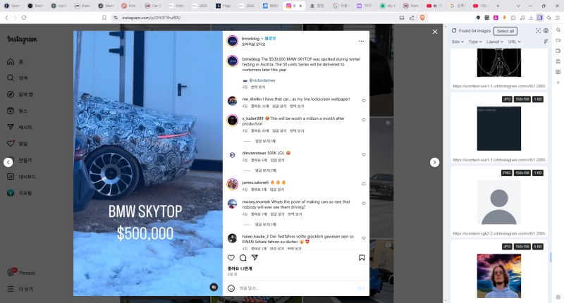 7억원 이상 BMW 스카이톱 위장막 쓴 테스트카 포착 튜9 0 373 0 2025.03.18 07:38 BMW의 로드스터 한정 모델 '스카이톱'이 알프스에서 테스트 중 짧은 스파이 영상에 포착되었습니다.8시리즈 기반의 이 차량은 섀시 조정이 필요해 겨울 테스트를 진행 중입니다. 영상에서는 더블 그릴, 얇은 전조등, 프레임 없는 도어, 탈착식 루프가 확인됩니다.BMW는 올해 말 전에 Z8의 현대적 후계자인 이 모델의 50대 생산을 시작할 계획입니다. 빌라 데스테 엘레강스 콩쿠르에서 컨셉트로 공개된 후 부유층의 관심으로 생산이 결정되었습니다.625마력의 스카이톱은 2026년 봄부터 인도될 예정이며, 가격은 최소 50만 달러에 달합니다. 0