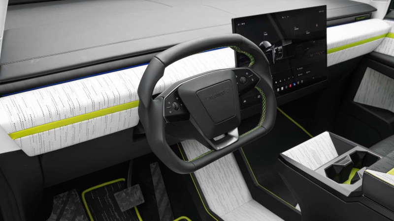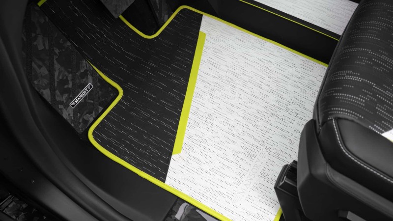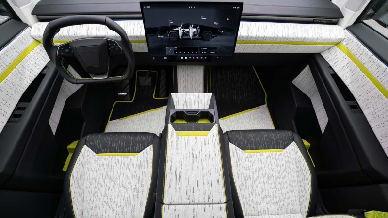 실내 역시 만소리 특유의 화려한 감성으로 탈바꿈했다. 원래 사이버트럭의 실용적이고 단순한 실내는 풀 가죽 시트와 카본 장식으로 고급스러움을 더했다. 고광택 표면 처리, 누빔 스티치 시트, 개인 맞춤형 가죽 마감, 시트와 안전벨트 및 매트에 자수 등 고객의 취향에 따른 맞춤형 인테리어도 제공된다.