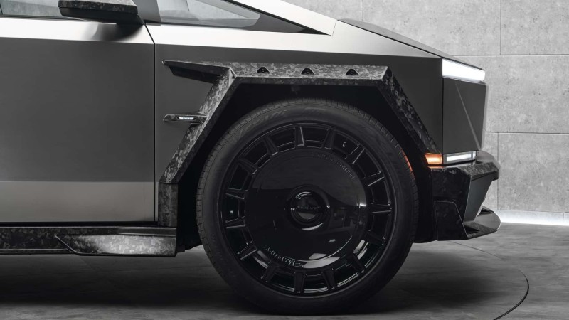 휠은 11x26인치 크기의 경량 단조 휠을 채택했으며, 타이어 규격은 315/40 R26이다. 만소리 측은 특수 알루미늄 합금으로 제작된 이 휠이 사이버트럭의 강력한 출력(최대 845마력)과 무게(최대 3.1톤)를 충분히 감당할 수 있도록 설계되었다고 설명했다.
