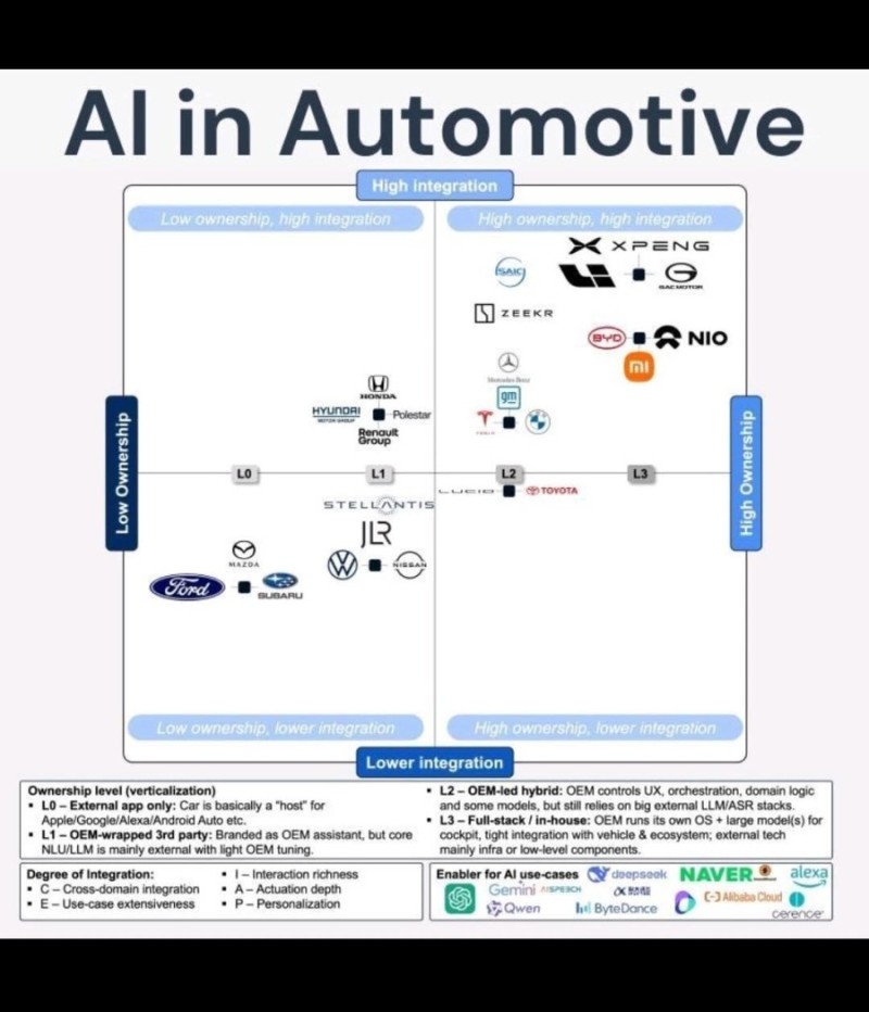 생각해볼 전세계 자동차들의 AI 활용 도표