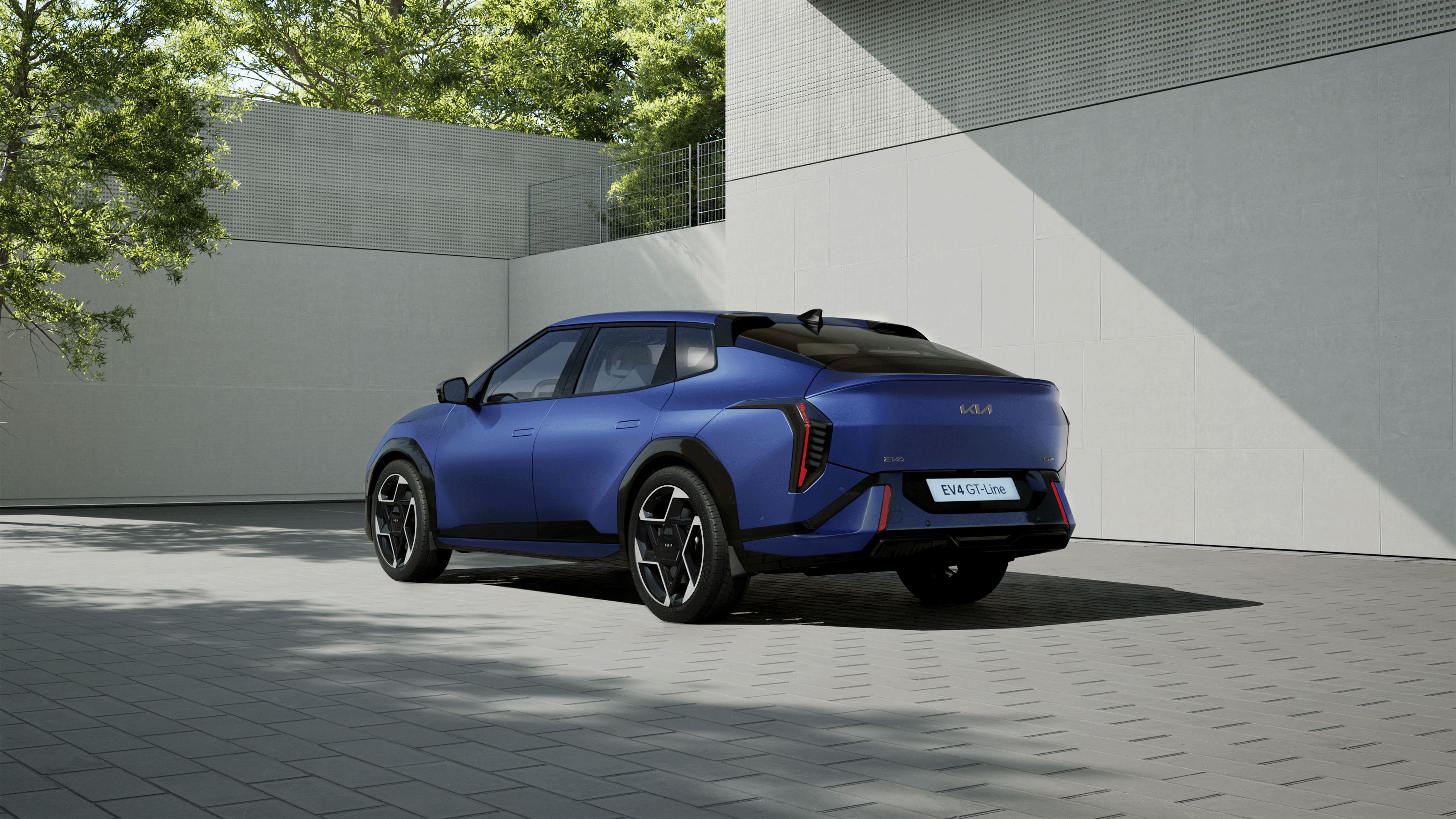 EV4는 전기차 전용 세단만의 차별화된 디자인이 특징이다. 전면부는 수직형 헤드램프와 스타맵 시그니처 라이팅이 어우러진 ‘타이거 페이스’로 강렬한 인상을 준다. 기하학적 패턴의 하단 범퍼는 역동성을 더한다.