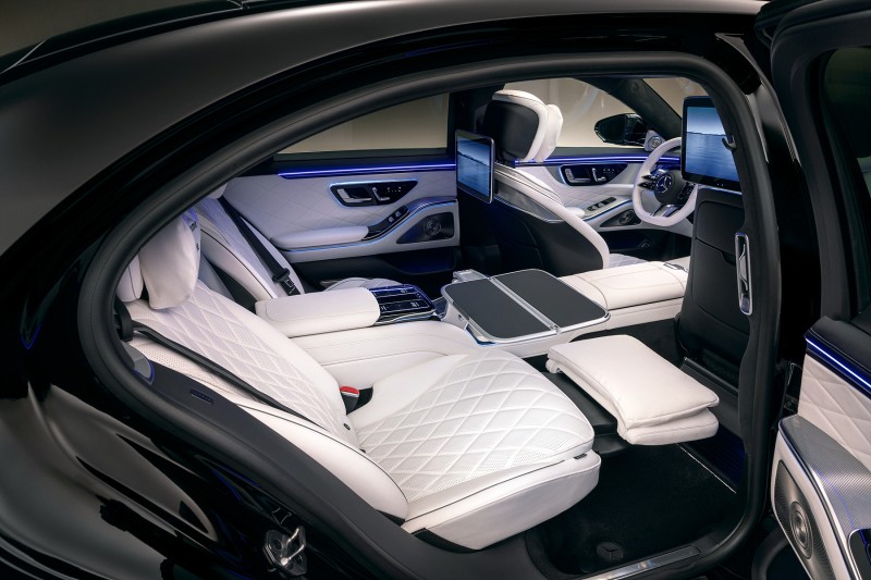 롱 휠베이스 모델의 후석 엔터테인먼트 시스템이 대폭 강화됐다. MBUX 하이엔드 리어 시트 엔터테인먼트 시스템의 디스플레이 크기가 13.1인치로 커졌으며, 통합 HD 카메라가 새로 달렸다.
