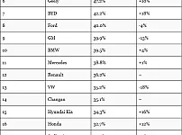1위는 예상대로 테슬라~상위에 예상을 벗어나 중국 브랜드들이 포진해있네요 ㅠㅠ