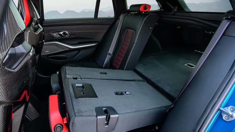 BMW M 엔지니어링팀은 카본파이버 바디킷을 광범위하게 적용해 기본 모델 대비 15kg 경량화에 성공, 공차중량 1,850kg을 달성했다. 이는 V8 플러그인 하이브리드 파워트레인을 탑재한 M5 투어링보다 무려 625kg이나 가벼운 수준이다. 정지상태에서 100km/h 가속은 3.5초로 기본 모델과 M5 투어링보다 0.1초 빠르며, 최고속도는 일반 M3 투어링보다 20km/h 높은 300km/h로 제한된다.