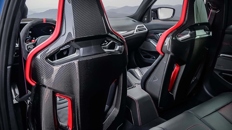 실내에는 카본 쉘 버킷시트가 기본 적용됐으며, 패들시프트와 센터콘솔도 카본파이버로 마감돼 경량화와 고급감을 동시에 추구했다. 다만 카본 세라믹 브레이크는 옵션으로 제공된다.