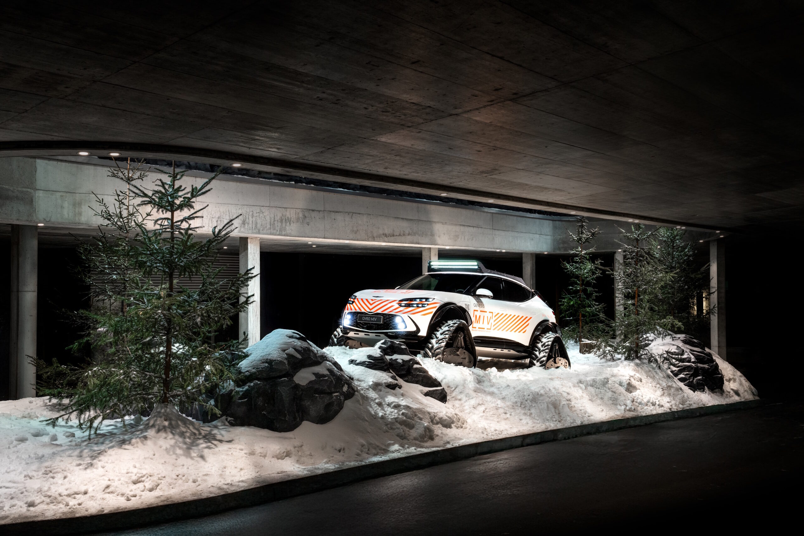 제네시스가 다보스포럼에서 ‘GV60 다목적 험로주행 콘셉트(Mountain Intervention Vehicle, MIV)’를 세계 최초로 공개했다. 이 차량은 극한의 기후와 지형에서 정찰 및 구조 활동이 가능하도록 개발된 특수목적 전기차다.
