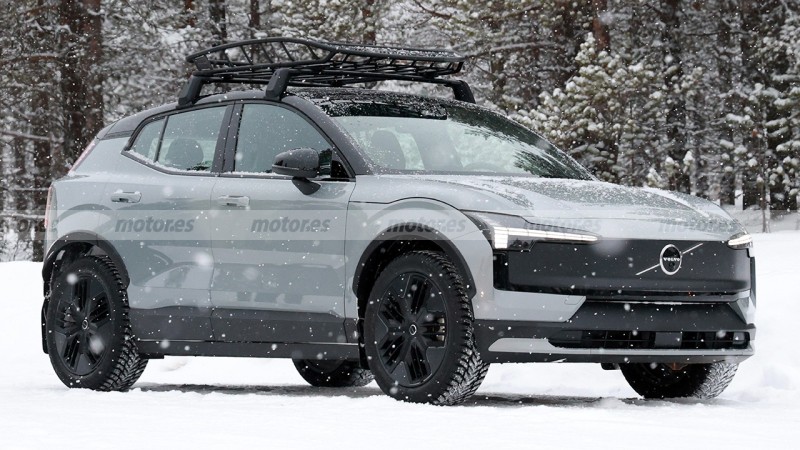 볼보 EX30의 크로스컨트리 버전이 북유럽 혹한기 테스트 현장에서 포착됐습니다.
