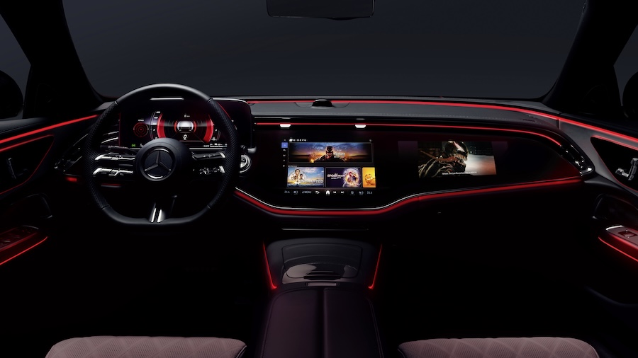 최신 세대 MBUX(메르세데스-벤츠 사용자 경험)를 갖춘 선택된 메르세데스 인포테인먼트 시스템은 이미 음악 서비스에서 Dolby Atmos 몰입형 서라운드를 지원하지만, 이번 여름에는 RideVu와 IMAX Enhanced DTS:X 서라운드 사운드를 통해 E-Class 실내가 큰 화면과 더욱 큰 사운드로 미니어처 영화관으로 변모할 것입니다. 이는 IMAX 사운드트랙이 DTS:X 몰입형 서라운드를 사용하는 차량에서 제공되는 첫 번째 사례입니다.