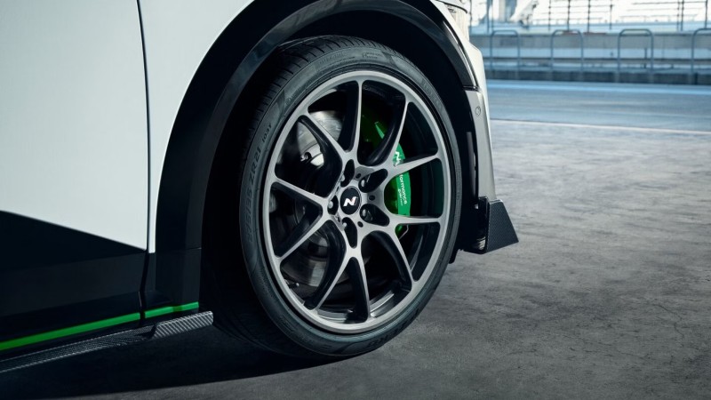 현대차는 아이오닉 5 N DK 에디션에 ▲ 두랄루민1을 정밀 가공해 제작한 6P 모노블록 브레이크 캘리퍼 ▲ 기존 아이오닉 5 N 모델 대비 면적을 54% 넓히고 마찰계수를 강화한 전용 브레이크 패드 ▲ 휠과 타이어 안착면에 특수한 톱니 가공 구조가 적용돼 고속 주행 중 마찰력을 강화한 21인치 경량 단조 휠 ▲ 차량 무게 중심을 낮추는 로워링 스프링 등 전용 부품을 장착해 주행 안정성과 제동 및 코너링 능력을 강화했다.