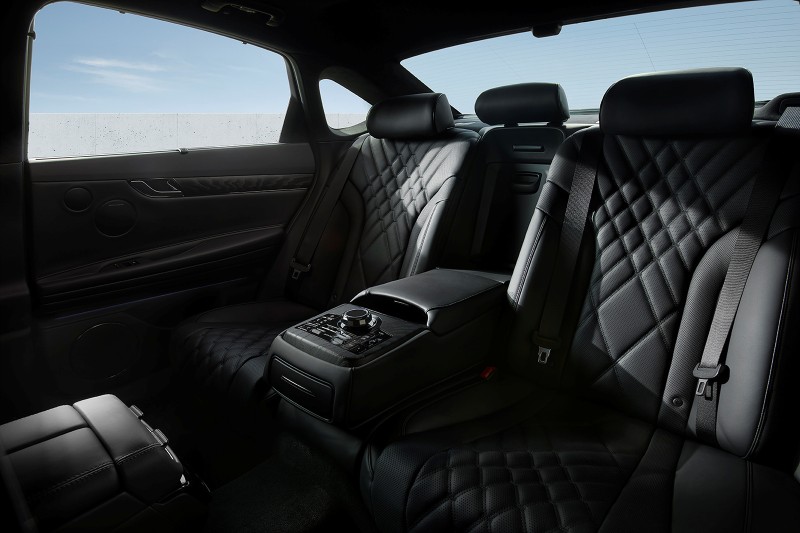 또한 유광 블랙 색상의 20인치 휠과 플로팅 휠캡을 기본 적용했으며, 트렁크 리드 중앙에 다크 그레이 색상의 제네시스(GENESIS) 레터링 엠블럼만 배치해 G80 블랙만의 존재감을 완성했다.