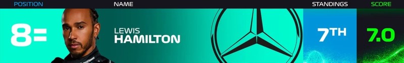 2021년 사우디 GP 이후 승수가 없었으나, 홈 레이스인 실버스톤에서 감동적인 우승을 거뒀다. 스파에서도 우승하며 총 5회의 포디움을 기록했다.