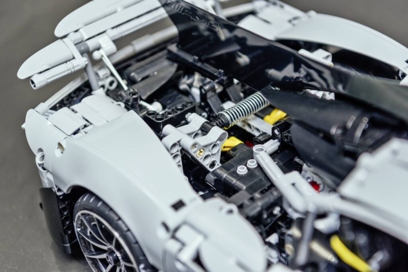 가장 주목할 만한 특징은 전자장치의 기본 탑재다. 레고 테크닉의 동급 모델과 달리 별도의 추가 구매 없이도 리모컨으로 조종이 가능하다. 전후진과 조향은 물론, LED 헤드라이트와 테일라이트, 버터플라이 도어까지 전동으로 작동한다.