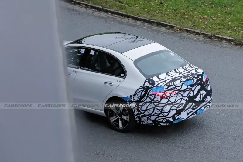 앞뒤 위장막 씌우고 테스트 중인 C클래스 페이스리프트입니다