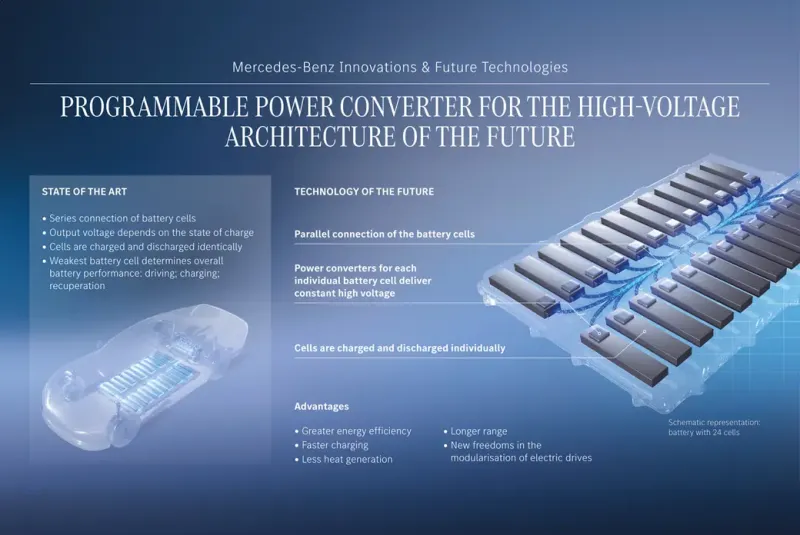 메르세데스-벤츠가 전기차의 게임체인저가 될 새로운 기술을 개발 중이다. '배터리용 실린더 가변제어(Cylinder deactivation for batteries)'로 불리는 이 혁신적인 파워 컨버터 기술은 전기차의 주행거리와 효율성을 획기적으로 개선할 전망이다.