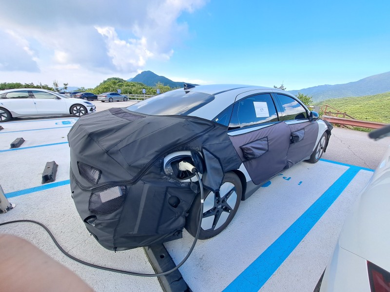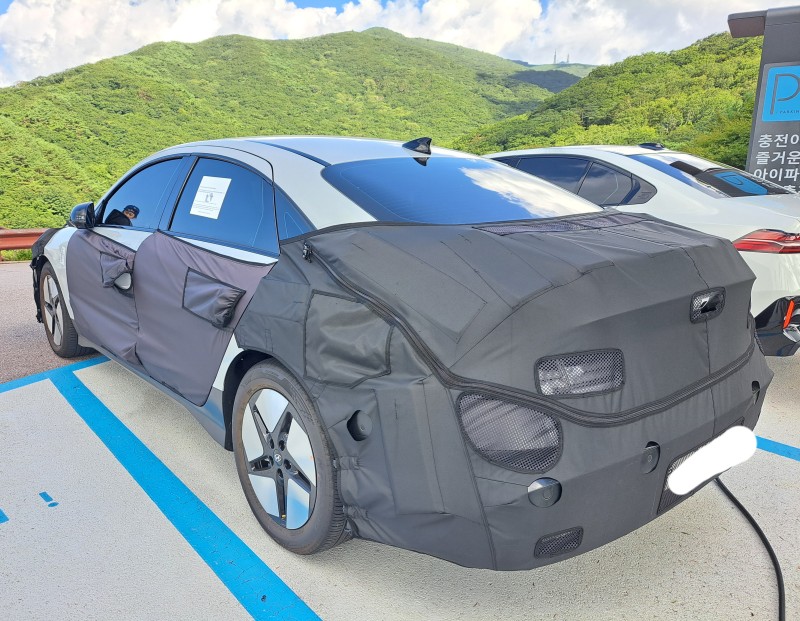 현대 아이오닉 6 기본형 페이스리프트 위장막입니다 튜9 0 415 0 2024.10.30 13:22 N 버전을 기다리시는 분들 많으실테지만 오늘은 기본(노말) 모델 위장막입니다기본 모델이지만 상위트림처럼 보이네요휠 디자인 독특합니다기존에는 7개 조각처럼 보이도록 디자인했었는데 5조각으로 바꿨네요호불호가 갈리긴 할 것 같습니다전기차동호회 자료임 0