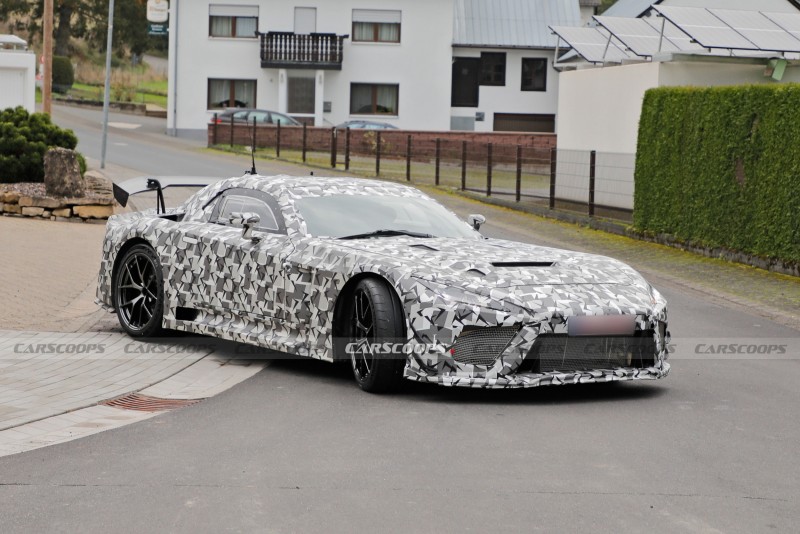 위장막을 씌운 프로토타입은 GT3 레이스카의 공격적인 자세와 비율을 유지하면서도 도로 주행에 적합하도록 몇 가지 세부 사항을 변경했습니다