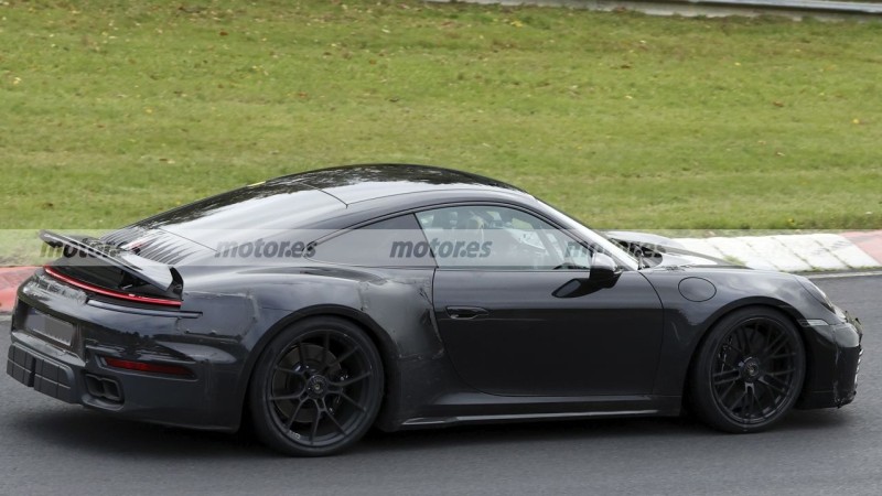포르쉐 911 터보 투어링 스파이샷 튜9 0 50 0 2025.12.20 10:40 뉘르에서 테스트 중인 911 테스트카입니다. 네모난 쿼드 배기구 달린 거 보면 터보인데 뭔가 이상합니다일단 뒷휠아치에 있어야 할 에어 인테이크가 위장막으로 가려져있음. 냉각 테스트용으로 막은건지 양산형에서 아예 없애는건지 아직 모름그리고 터보 특유의 고정식 리어 스포일러가 없습니다. 대신 전동 팝업 스포일러 달려있는데 이건 투어링 패키지 특징이죠요즘 GT3 투어링 사는 사람 많아져서 포르쉐가 터보에도 투어링 버전 내려는 거 같은데 맞을까요?성능은 원하는데 겉은 점잖게 타고 싶은 수요가 있으니까요 0