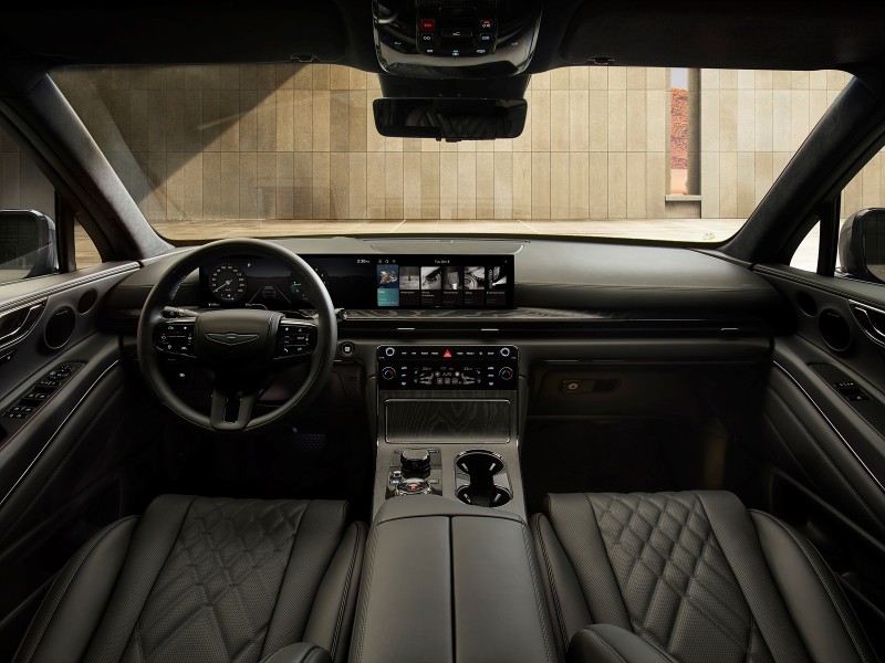 또한 GV80 블랙 전용 ▲리얼우드 가니쉬 ▲시트 가죽 ▲시트 퀼팅 및 파이핑 ▲카매트를 적용하고, 승하차 시 27인치 통합형 와이드 디스플레이에 표현되는 웰컴·굿바이 애니메이션을 새롭게 구현해 블랙만의 특별함을 더했다.