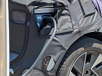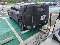 테슬라 슈퍼차저에 충전하는 아이오닉 5 위장막