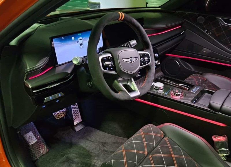 실내는 고급 소재와 스포츠 감성을 결합한 구성이 특징이다. 알칸타라와 카본 파이버를 중심으로 구성됐으며, 레카로 버킷 시트를 적용해 고성능 모델에 걸맞은 착좌감을 확보했다. 색상 포인트 역시 외관과 조화를 이루며 마그마 전용 분위기를 완성한다.