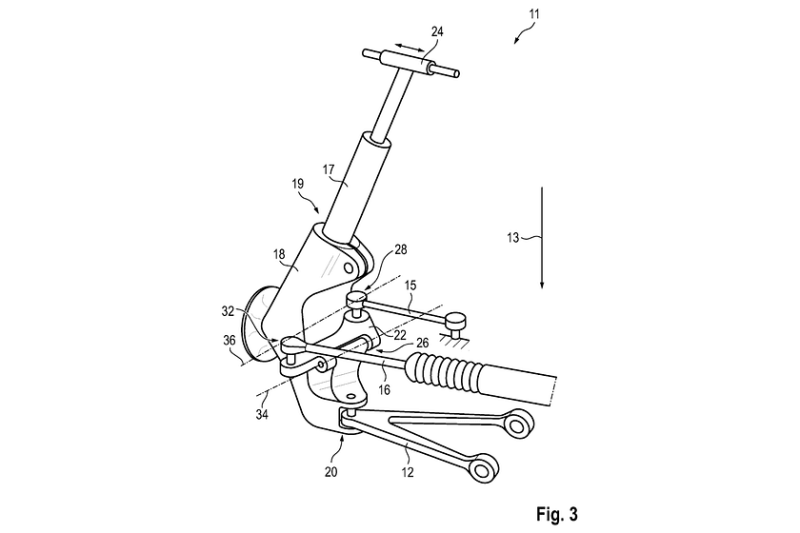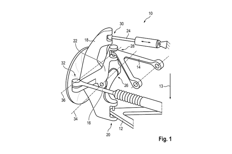 더블 위시본 서스펜션 시스템에서는 휠 캐리어에 장착된 하단 위시본/타이로드는 그대로 유지되지만 스티어링 암을 포함한 상단 위시본에 액추에이터가 추가됩니다.