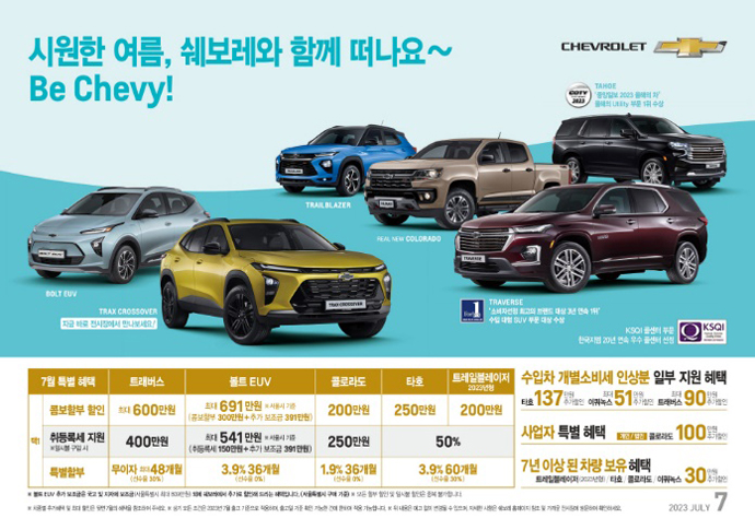 쉐보레(Chevrolet)가 7월, 프로모션을 통해 국내 고객들을 대상으로 풍성한 혜택을 제공한다.