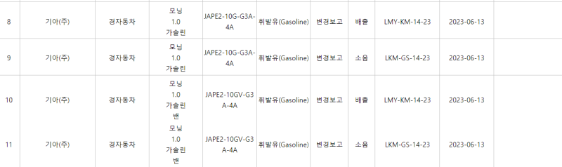 모닝 2차 페이스리프트 환경부 인증