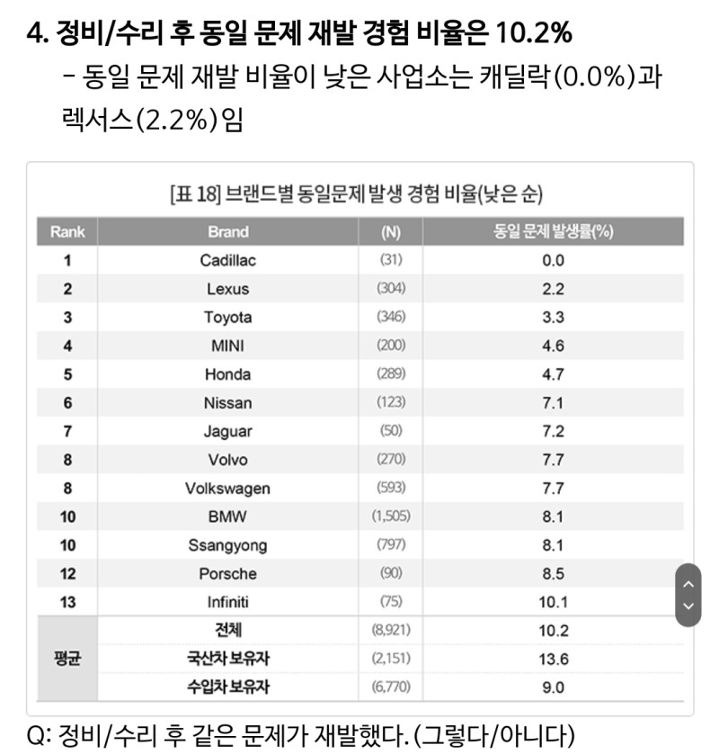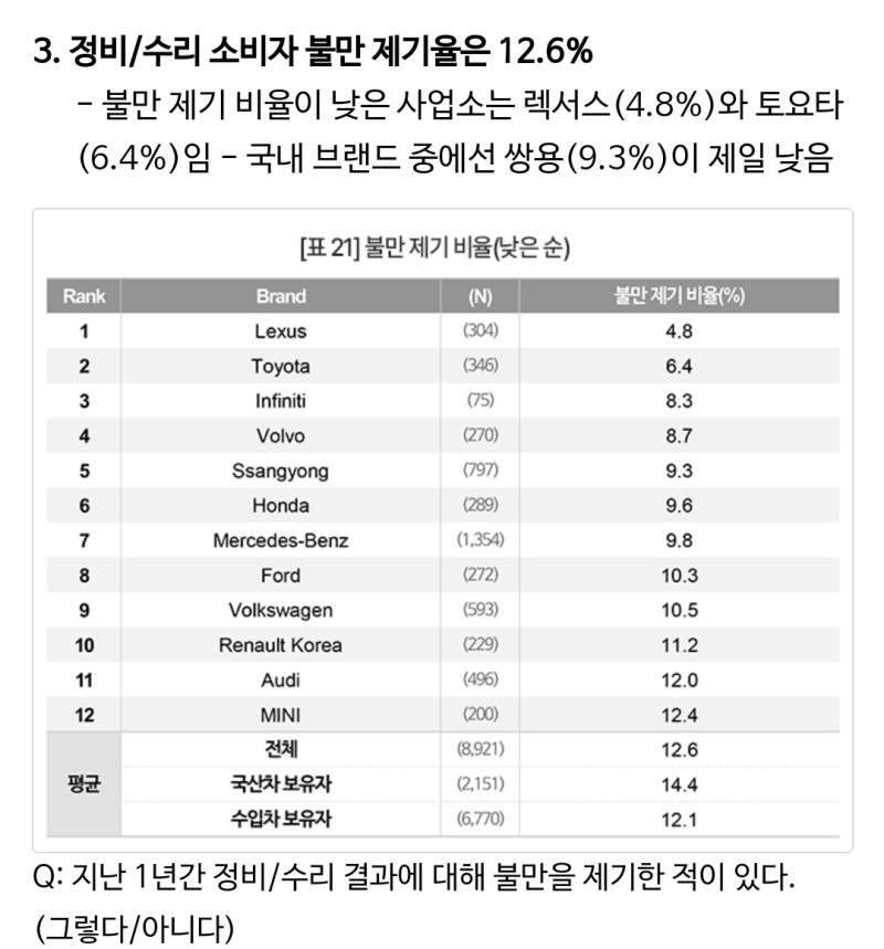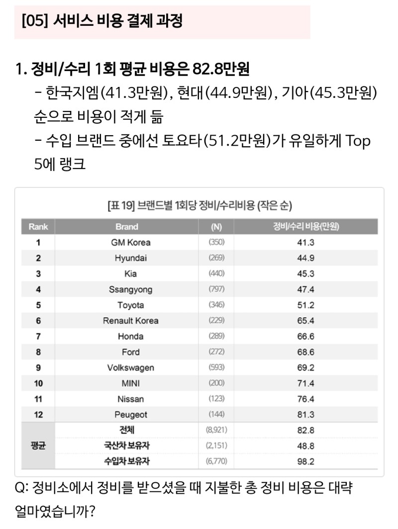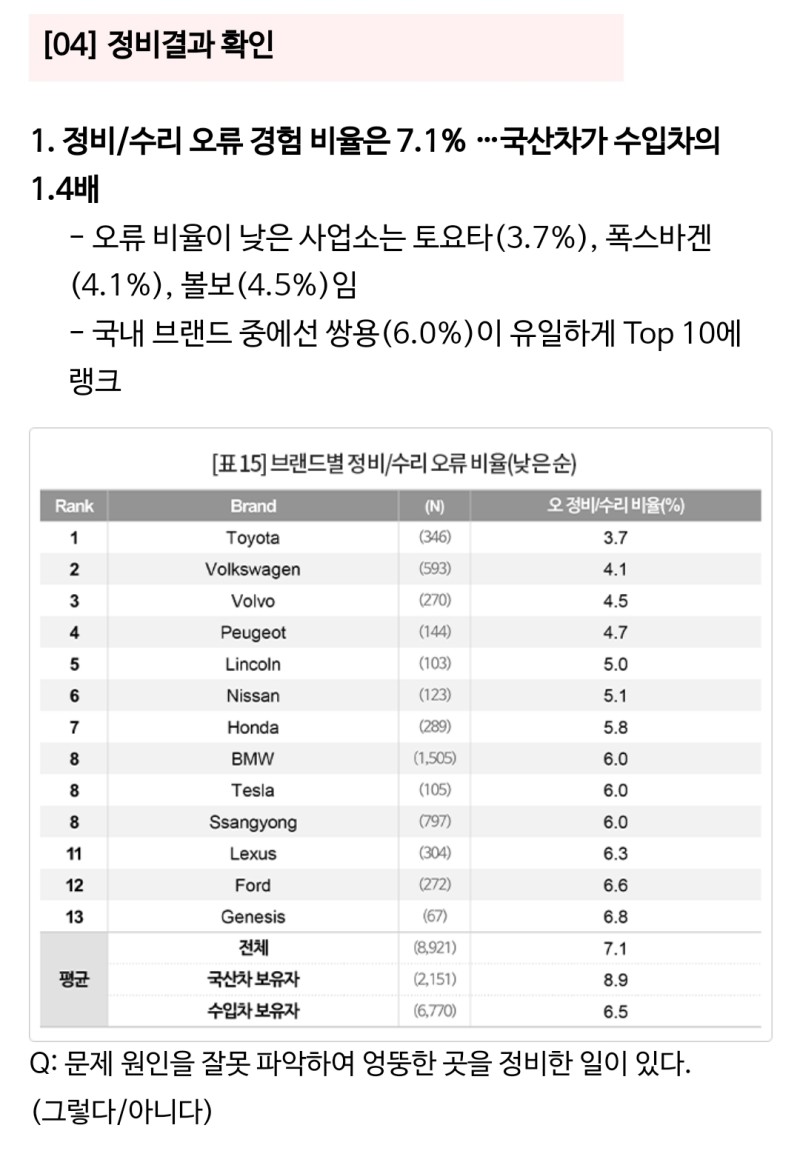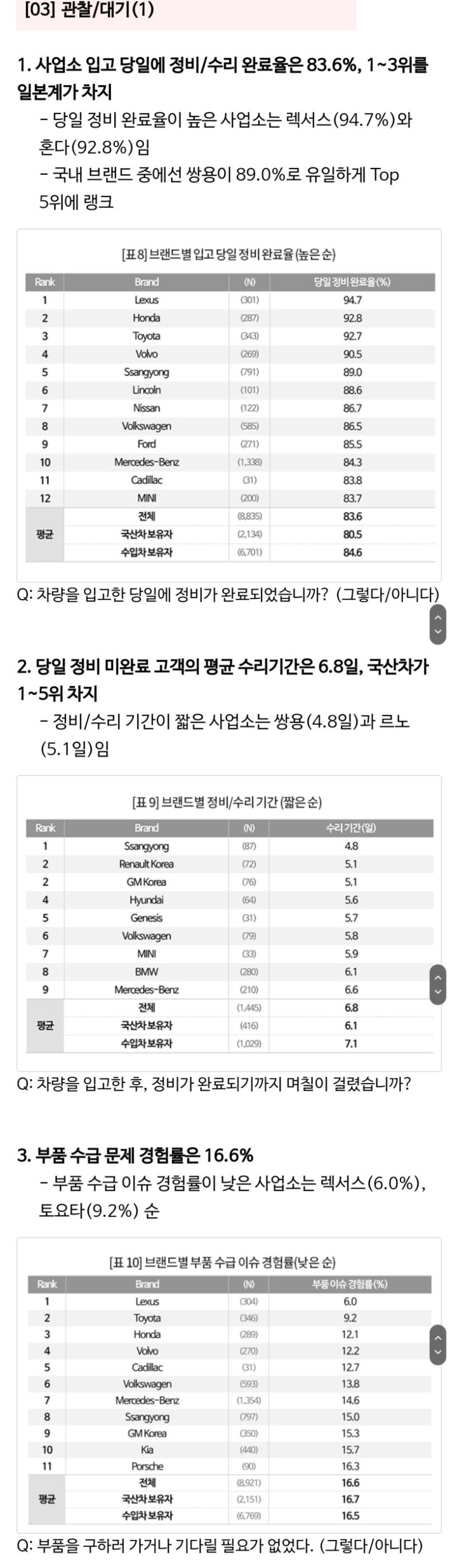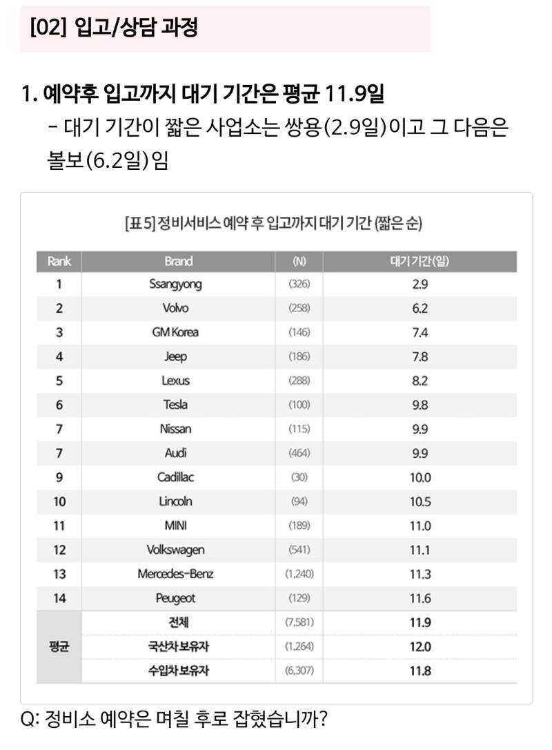 의외로 쌍용차 AS 대기 기간이 짧네요 수입차는 볼보가 ㅎ