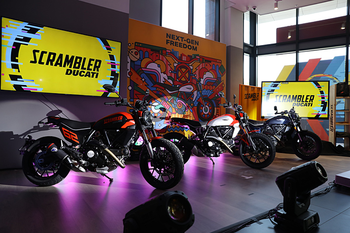 스크램블러란 1960년대 자유로움을 추구하는 히피 문화가 퍼뜨린 라이프 스타일에 맞게 기획된 모터사이클 장르다. 두카티는 2015년, 기존 두카티의 고성능 이미지를 더해 도심에서의 펀 드라이빙에 최적화된 스크램블러를 탄생시킨 바 있으며, 2023년 2세대 모델을 통해 첨단 주행 보조 기능을 더하고 더욱 아이코닉한 스타일로 진화했다.