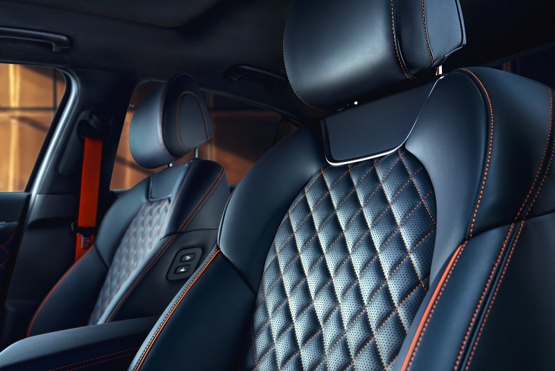 전용 실내: 울트라마린 블루 나파가죽 + 오렌지 포인트, 스웨이드 헤드라이너