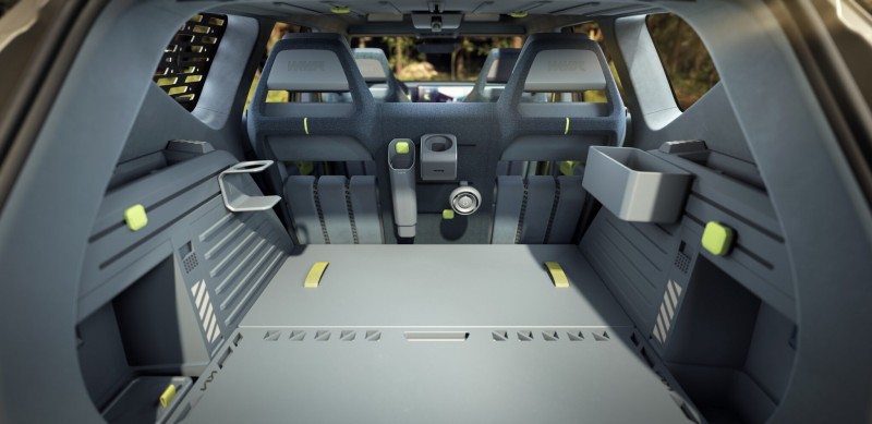 실내는 스프루스 블루 컬러와 BIO PU 소재로 꾸며졌으며, 이동식 계기 패널, 캠핑 조명, 내장형 라디오, 탈거 가능한 시트 등 아웃도어 맞춤 기능이 더해졌습니다.