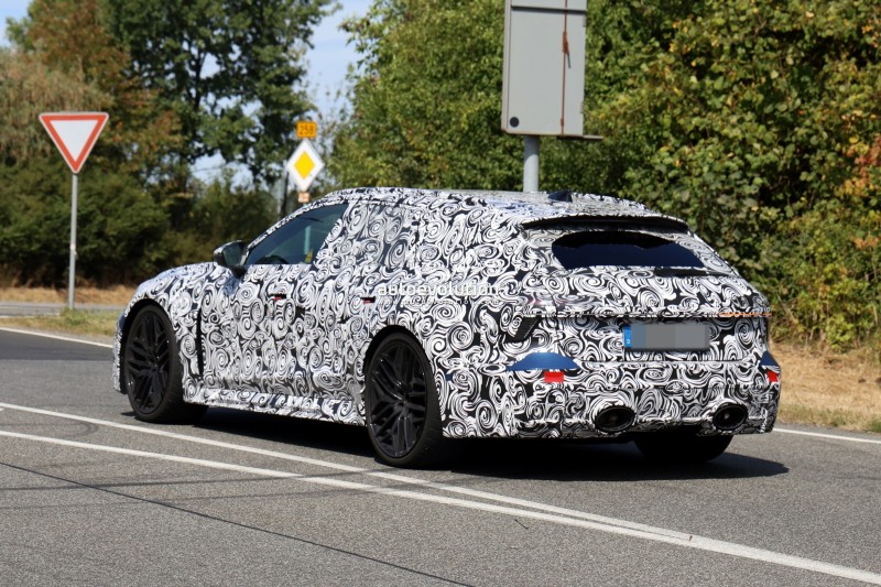 이번에도 BMW M5 투어링과 정면 대결 포지션은 변함없고요. 위장막 속에서도 범퍼 디자인이 기존과 다르고, 앞 그릴 커다랗고, 뒤쪽은 얇은 라이트 바가 양쪽을 연결하는 형태로 바뀐 게 눈에 띕니다. 디퓨저, 루프 스포일러도 좀 더 과격해졌고, RS의 상징인 듀얼 오벌 머플러도 그대로입니다. 휠 디자인, 전용 바디킷, 내부 트림/시트/인포테인먼트 업데이트도 당연히 들어가겠죠.