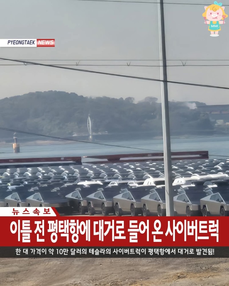 평택항에 대거로 들어 온 사이버트럭 튜9 0 413 0 2025.11.10 00:16 이틀 전 평택항에 대거로 들어 온 사이버트럭한 대 가격이 약 10만 달러로 한화 1억 4천 정도라는데전 세계적으로 생산이 한정된 모델 이라고 함 ㄷㄷ우리나라에 이렇게나 들어오다니.. 0