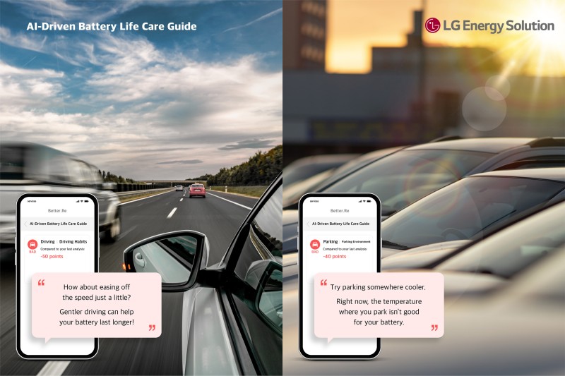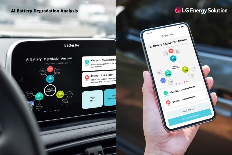 해당 기술을 활용한 ‘배터리 AI 퇴화 분석’ 결과는 LG에너지솔루션 배터리 관리 서비스인 ‘비라이프케어(B-Lifecare)’ 등 모바일 앱을 통해 실시간 가이드를 비롯해 일·주·월간 리포트를 받아볼 수 있다.
