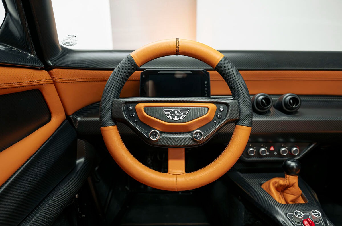 차량의 공차중량은 단 780kg. 이 수치를 가능하게 한 핵심은 카본파이버를 적극 활용한 차체 구조다. 섀시는 돈커부트의 기술 자회사인 엑스-코어 테크놀로지스(Ex-Core Technologies)가 개발했으며, 차체 전반에 걸쳐 경량 소재가 적용됐다.