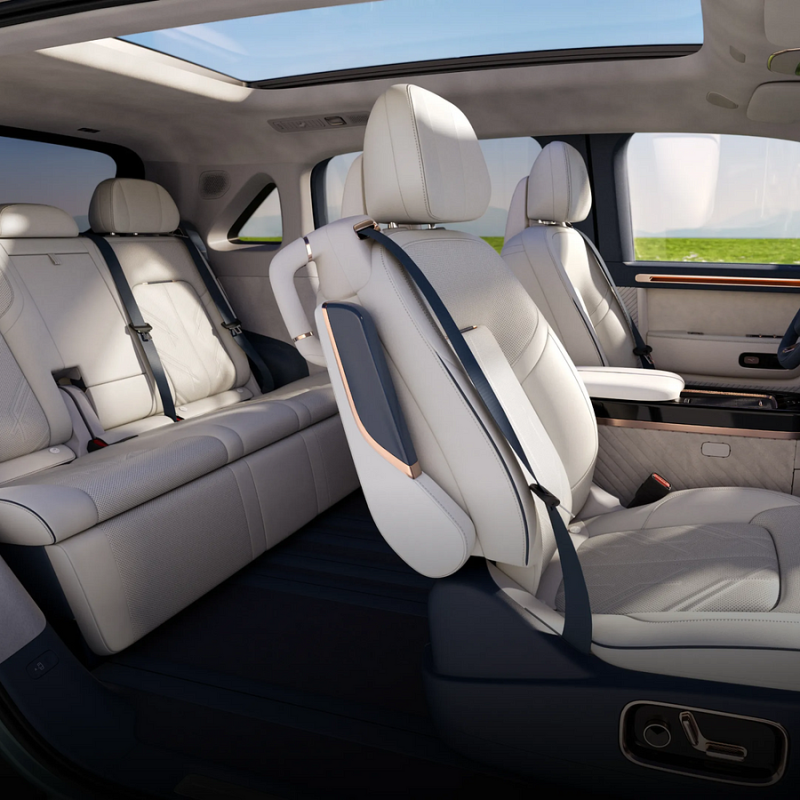 이 파격적인 구조는 아이를 카시트에 태우거나 캠핑 장비처럼 부피가 큰 짐을 실을 때 비교할 수 없는 실용성을 제공한다. 전장은 4,888mm로 5,155mm인 카니발과 직접적인 경쟁자로 보기 어렵지만, 전기차 전용 플랫폼(SEA 아키텍처)을 기반으로 휠베이스는 3,008mm에 달해 생각보다 넓고 효율적인 실내 공간을 확보했다.