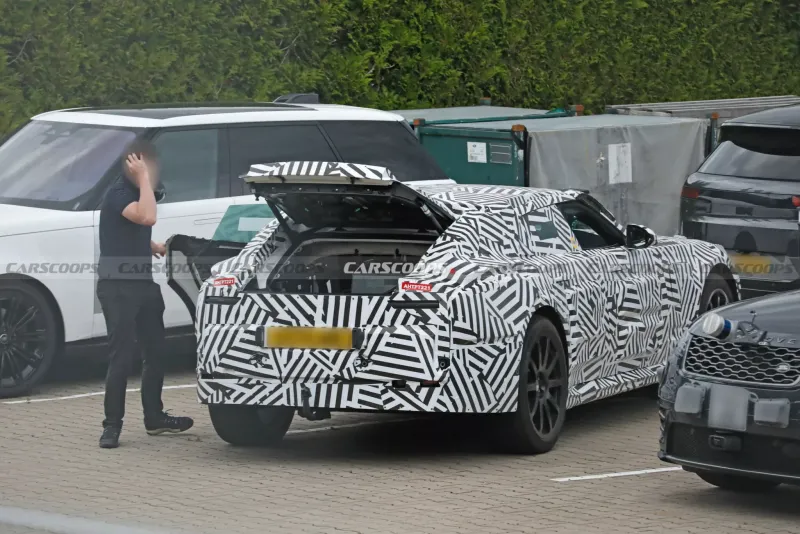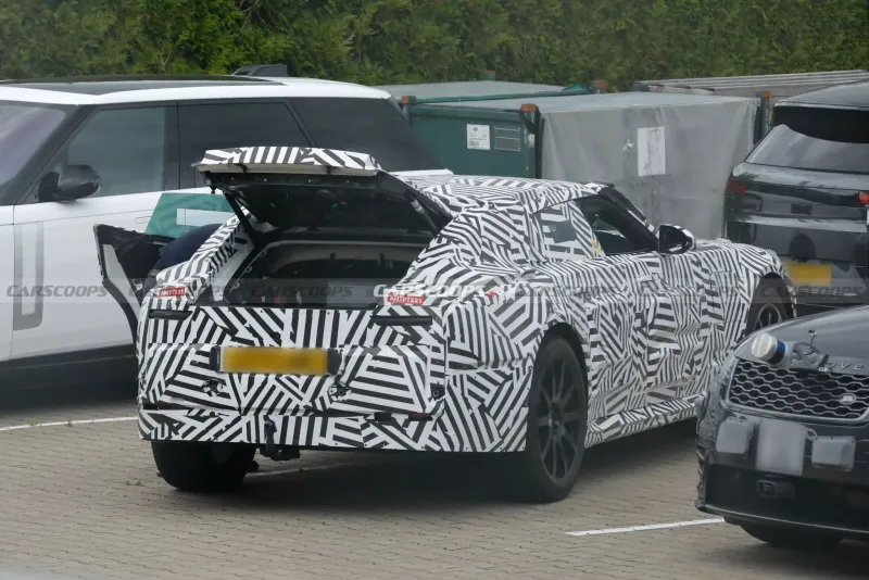 재규어 타입 00(Type 00)이 다시 모습을 드러냈습니다. 이번엔 뉘르부르크링에서 후면 해치를 연 채 테스트 중인 모습이 포착됐는데, 실제로 보면 크기에 비해 해치가 꽤 작습니다. 그래도 트렁크 공간은 생각보다 넉넉해 보이고, 프로토타입답게 단조로운 휠과 스틸 브레이크가 장착돼 있습니다. 전면 흡입구에는 액티브 플랩이 달려 있고, 좌측 펜더에는 꽤 큰 충전 포트 커버가 보입니다.